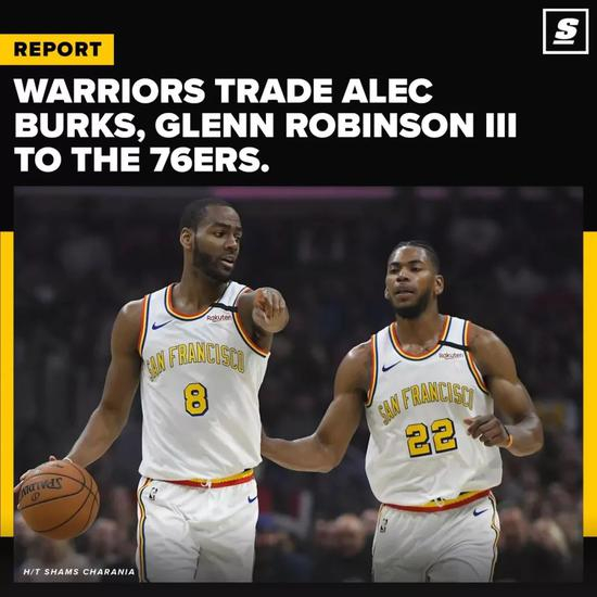 北京时间2月6日,根据the Athletic记者Shams Charania的报道,勇士将亚历克-伯克斯和格伦-罗宾逊三世交易至76人。他们俩也是本赛季勇士的第3和第5得分手,如果不算库里和拉塞尔,伯克斯是全队得分王!