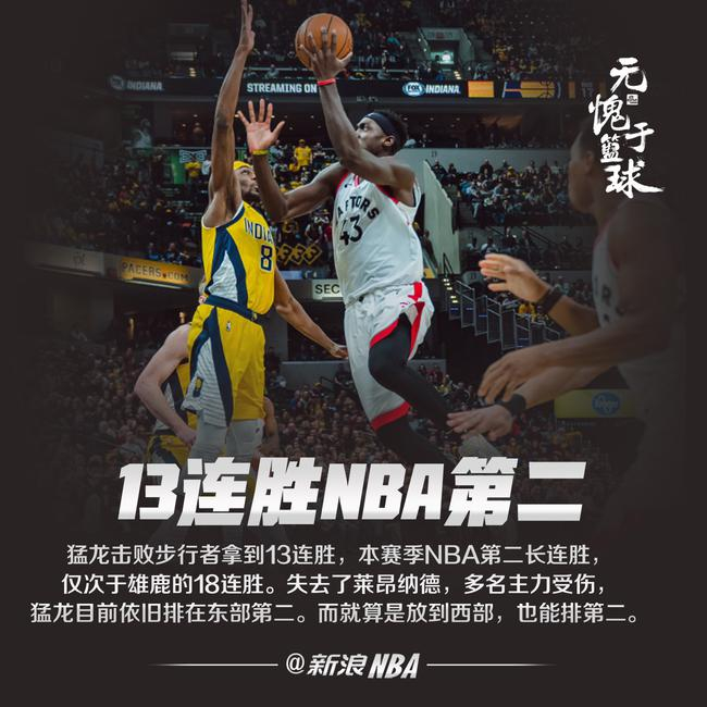 北京时间2月8日,猛龙击败步行者拿到13连胜,本赛季NBA第二长连胜,仅次于雄鹿的18连胜。失去了莱昂纳德,多名主力受伤,猛龙目前依旧排在东部第二。而就算是放到西部,他们的这个战绩也能排第二。