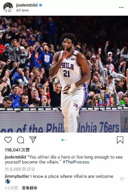 经过考古学家的鉴定这条推文和当初JB离开森林狼加盟76人时所发的内容