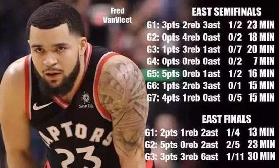 从东决G4到总决赛G6,他场均能砍下14.7分,命中率高达51%,三分球命中率53%!“范乔丹”生生被他打成了褒义词!
