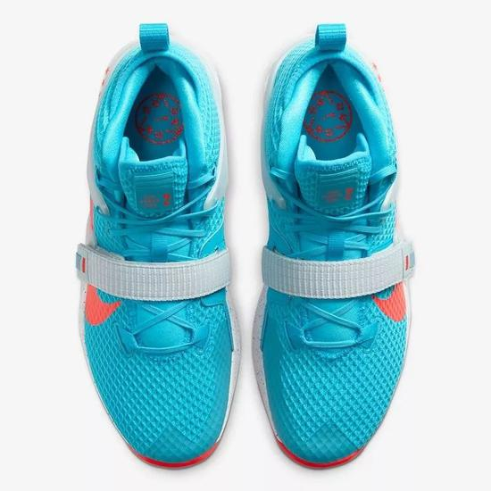 球鞋整体采用了白蓝色为主基调,这个配色灵感也和杜兰特的KD12全明星配色版本有异曲同工之妙。