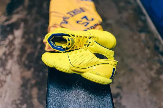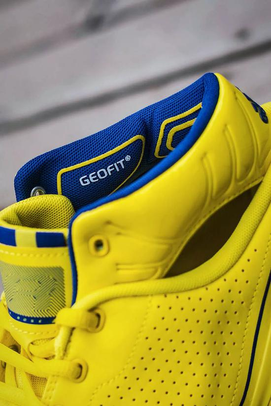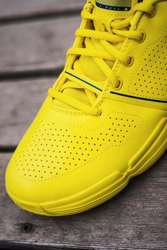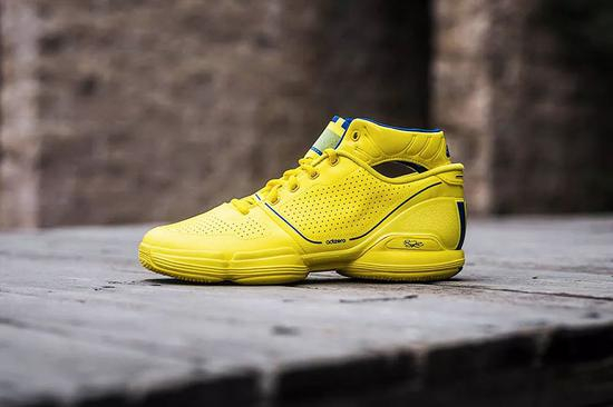 通体为荧光黄装扮,细节点缀蓝色条纹,呼应当时全明星东区战袍。可能是有史以来最为风骚的全明星战靴之一,尽显当年罗斯意气风发,不可一世。