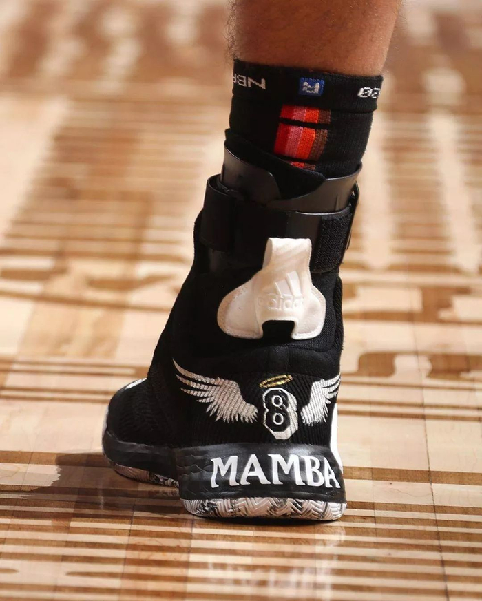 新秀赛上特雷杨上脚了一双定制版本的N3xt L3v3l ,鞋面上也印有曼巴学院的徽标,在后跟处有科比和GiGi的号码,并且围绕号码印有天使翅膀,寓意纪念科比和GiGi。
