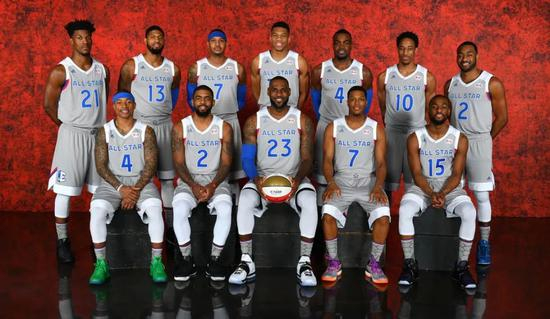 时间回到2017年全明星,当时的全明星还没有改制,仍然沿用东西部对抗制度,东部入选的球员包括了巴特勒、乔治、安东尼、字母哥、米尔萨普、德罗赞、沃尔、小托马斯、欧文、詹姆斯、洛瑞和肯巴沃克。