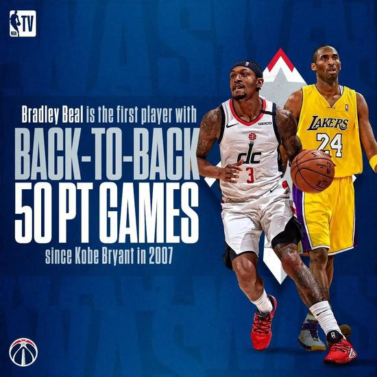 比尔也成为了科比后首位背靠背比赛都拿到至少50分的球员,科比曾在2007年3月做到过。