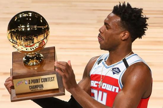 两周之前的全明星,希尔德拿下了自己的第一座三分王。不得不说,在这样一届可以载入史册的全明星上,希尔德的表现真的增添了不少戏剧性,他在首轮就拿到了最高分27分,决赛圈最后一个出场,并且在最后一个点成功绝杀布克夺冠,精彩程度完全不输给扣篮大赛和全明星正赛。