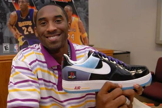 Playstation可以说是大部分球鞋玩家心中的梦幻逸品了,即使你并不关注或了解Air Force 1你都一定听过它的名字。纯漆皮的设计也正呼应了Playstation 3标志性的外壳,150双的超限量形式也让人们一鞋难求。Kobe与这双鞋之间的故事也同样成为了经典,作为《NBA07》封面人物的他,在发布活动上收到了这双鞋,并留下了这张经典的照片。