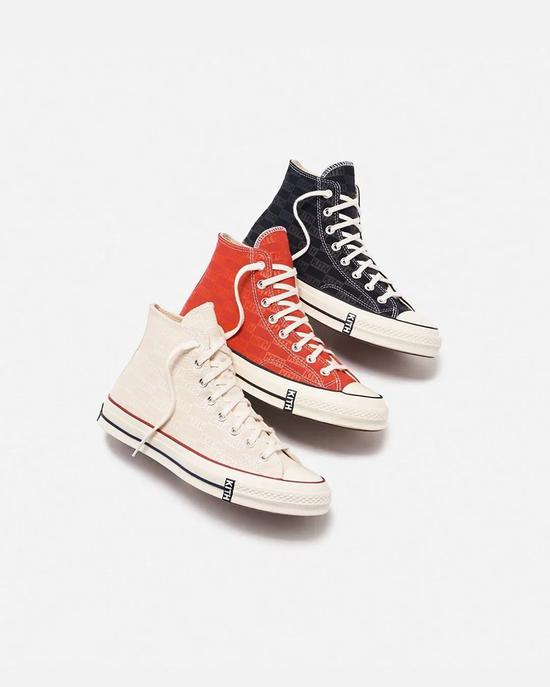 熟悉 KITH 和 CONVERE 联名的朋友都知道这款 Chuck 70 的联名已经不是第一次发售了,黑白两款配色甚至已经是第三度补货了,不过中间那款红色的 KITH x CONVERSE Chuck 70 是新配色。