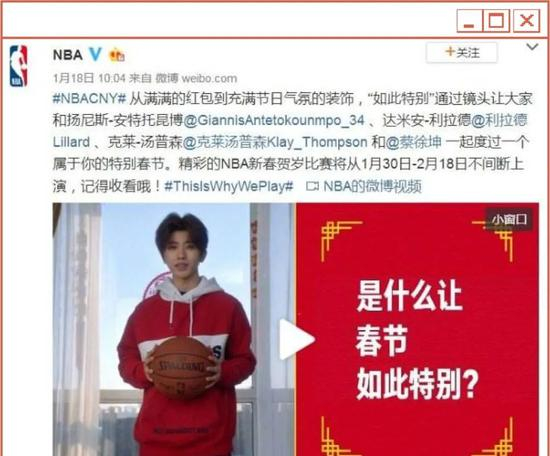说下蔡徐坤本身。2019年,NBA为了扩大市场,吸引新球迷,邀请他做了形象大使。