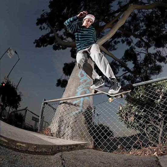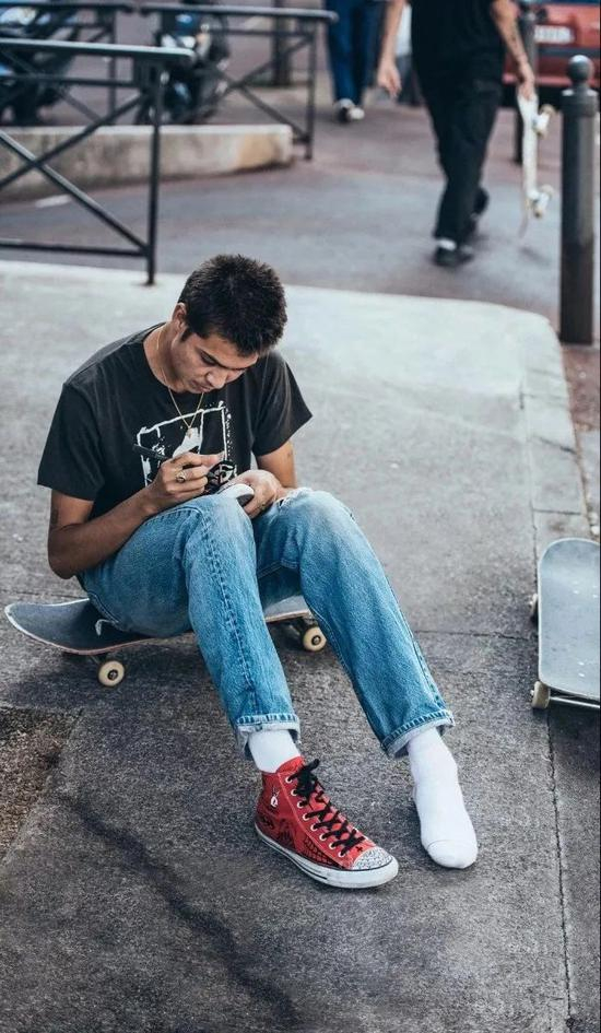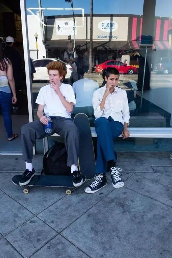 这样的酷孩子Sean 在 Supreme 和 Converse 之前还有过 Brixton,Huf 和 Stereo 的赞助,它标志性的塞进裤子里的上衣和九分裤在街头分外显眼。