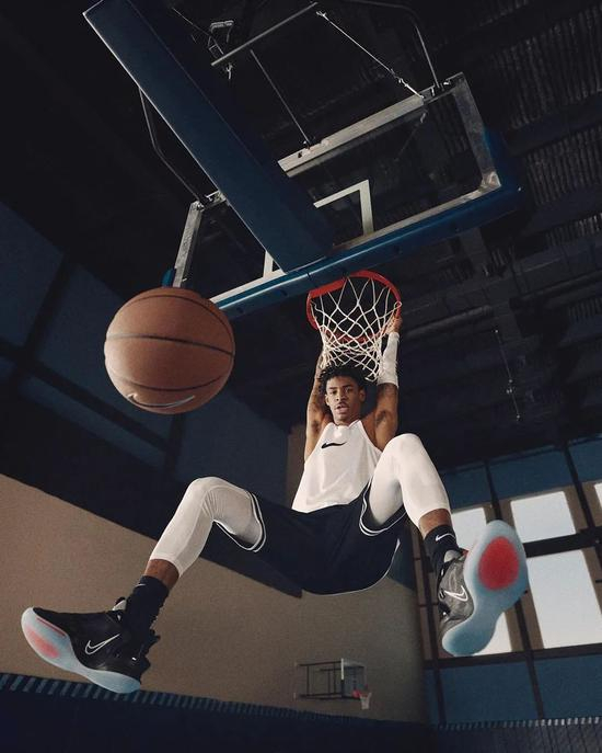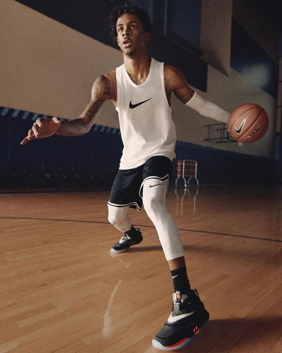 差不多一年前的这个时候,Nike推出了那双划时代的篮球鞋Nike adapt BB,将“自动系带”运用到了篮球——这个对球鞋性能有着复杂需求的运动当中。而当时Nike也选择让联盟里的未来之星代言这双未来感十足的球鞋,Jayson Tatum、Kyle Kuzma、Luka Doncic。。。一年后,Nike adapt BB 2.0诞生,但Jayson Tatum和Luka Doncic入驻Jordan Brand,Kyle Kuzma告别Nike。于是Nike便将目光瞄准了这个来自孟菲斯灰熊队、19年榜眼秀、年仅21岁的Ja Morant。