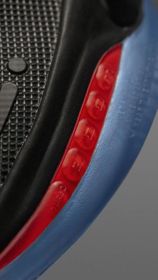 Nike Adapt BB 1.0被诟病的一点大概是“仅仅”在中底采用了Cushlon泡棉作为缓震材料,尽管在上脚体验的过程中并没有明显的缺陷,但作为一双科技感十足的球鞋Cushlon泡棉显然有些“鸡肋”。于是Nike的设计师便在Nike adapt BB 2.0的前掌加入了Air Zoom Turbo气垫单元,这款目前运用于Kyrie Irving签名球鞋上的缓震科技,可以极大地提高球鞋的舒适度。