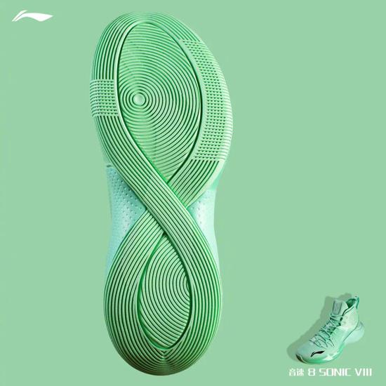最具代表性的当属鞋底,音速8的大底造型,竖起来看像是数字“8”,横过来看像是数学中代表“无限”的符号。外底纹路也分为三种,为不同的发力点提供更好的抓地力。橡胶大底也让它完全能够胜任水泥地作战。