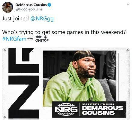 近日考辛斯在个人社媒上宣布正式加盟NRG电子竞技俱乐部,成为其中的一员。