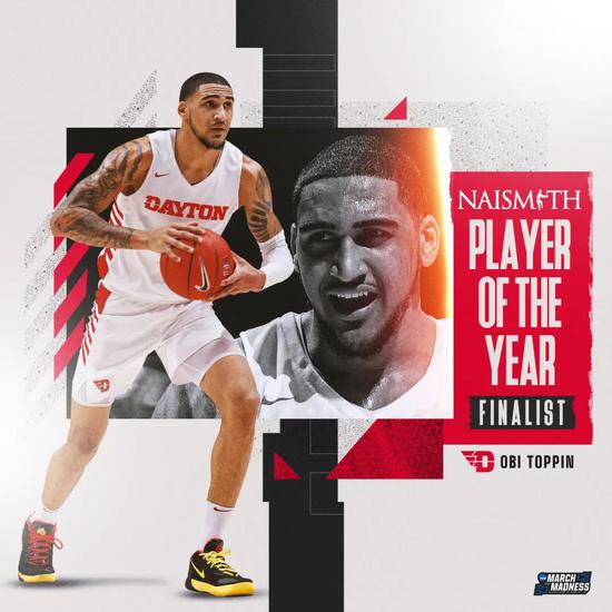 本赛季,22岁的托平为戴顿大学出战31场比赛。身高2.06米、体重99公斤的他在场上大部分时间出任中锋,场均可以得到20分7.5板2.2助1断1.2帽,投篮命中率高达63.3%,三分命中率达39%!