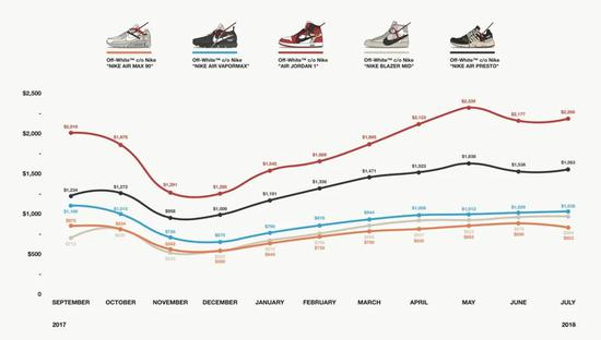 Off-White与耐克、AJ联名打造的鞋款,几乎每一款都是限量或者超级限量,没有任何一双是货量多么恐怖,彷佛“抢到就是赚到认证”联名,所有热情都十分高亢,也导致供超级低于求。