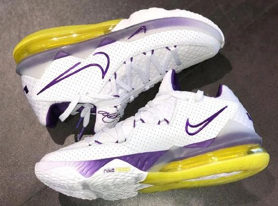 最新曝光的湖人配色,更是区别于以往一味的紫色设计,而是将是湖人经典紫金元素完美融入到球鞋细节中,低帮版本鞋面皮革与织物的拼接设计,也为球鞋提供了很好的包裹性和耐久度。