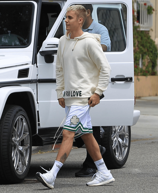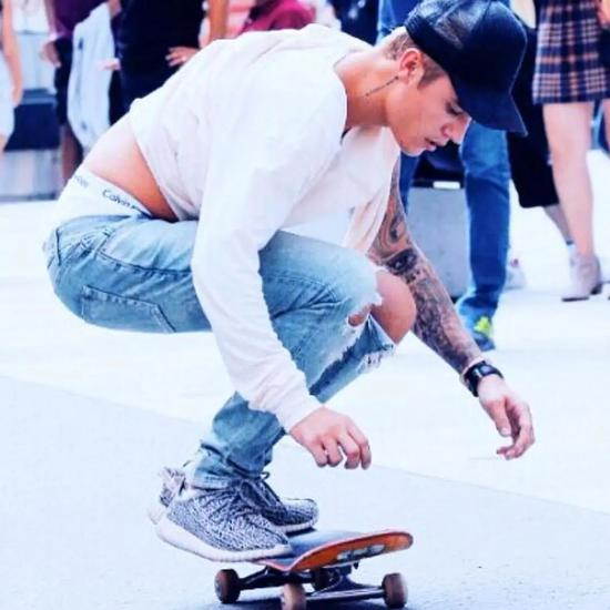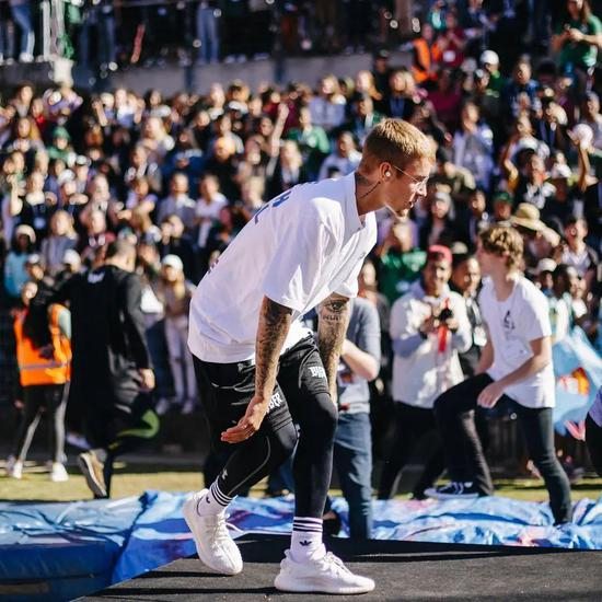 更值得一提的是,当时大热的 adidas UltraBoost 系列,除了侃爷作为主要推手外,Bieber 的各种上身驾驭也是让这双鞋大卖的一大原因。
