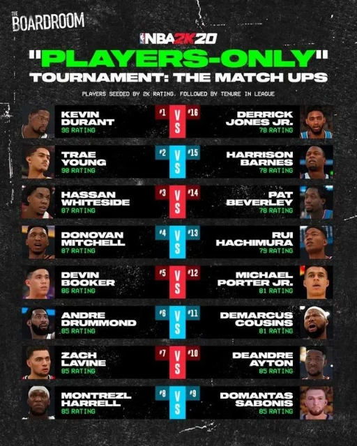 因为疫情,各大篮球联赛现在都处于停摆状态。但明天,我们终于有比赛可看了!NBA官方和游戏公司NBA2K联合打造的只有16个球员参加的NBA2K20球员锦标赛,将在明天开战!最终的夺冠者将获得10万美元的善款,可以捐给他们制定的机构,用于抗击新冠肺炎疫情。