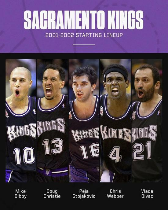 2001-02赛季的国王,华丽篮球的代名词,常规赛61胜21负联盟第一。和巅峰湖人在西决大战七场后落败,他们不是总冠军,却是真正的国王。