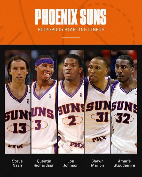 2004-05赛季的太阳,跑轰篮球的鼻祖。常规赛战绩62胜20负,高居联盟第一。也是纳什生涯最光辉的一段岁月,只可惜最后西决不敌马刺。