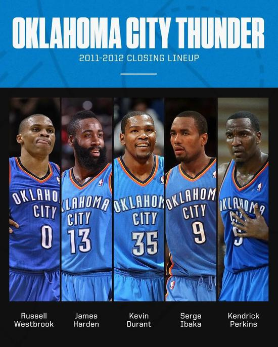 ESPN晒了一组图,那些没有夺冠的球队阵容,哪支最让你遗憾?第一个就是2011-12赛季的雷霆三少,总决赛不敌巅峰热火。