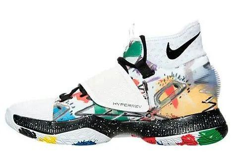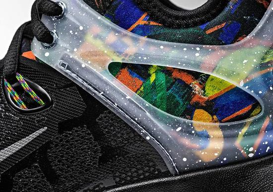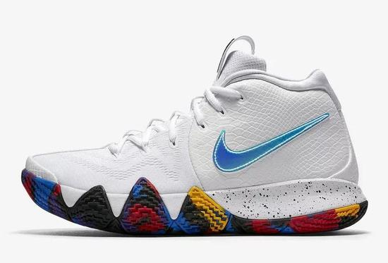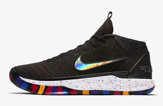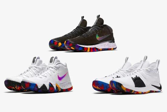 尽管在2017年之后,“篮网收集者社团”别注鞋款的推出戛然而止。但让这样一个绚丽迷幻的版本,彻底销声匿迹,这也绝非明智之举。于是在2018年,代表着“疯狂三月”的那抹“彩虹”于当季主推——Kobe A.D.,Kyrie 4和PG 2三款签名鞋上再度现身。尽管这次官方名称中后缀依然不是“NCS”,而是更加直接的“March Madness”,但那大面积黑白纯色和“混战”图案的对比,仍然能够体现出NCS系列的初衷、遗风和格调。