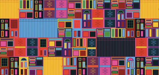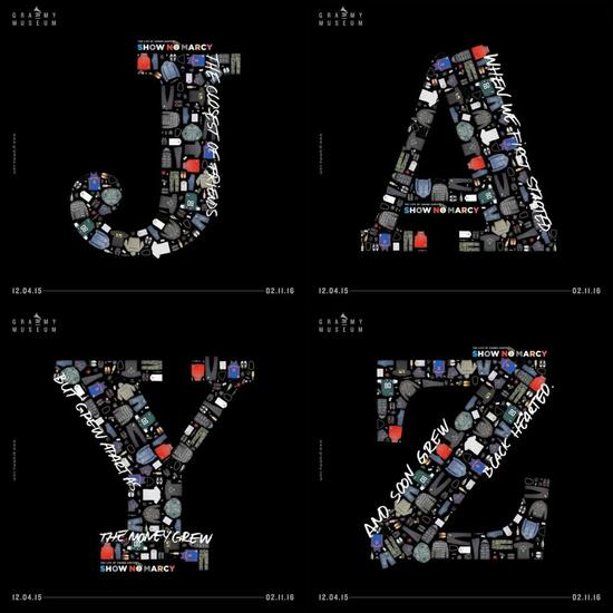 John为“格莱美博物馆”项目设计的Jay-Z主题多媒体互动装置上的图案,取自Jay-Z本人以往所穿的服饰拼接