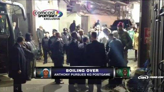 东尼桑也不废话,赛后单枪匹马,杀气腾腾堵在客队大巴车前,不知是不是想让KG当庭表演《敢问路在何方》。好一个KG,此时躲在大巴上一言不发,得亏五位安保与伍德森连番劝阻,才算消了东尼桑“定要办了KG”的想法。