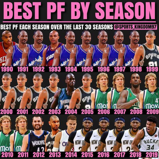 在邓肯对位的球员中,他在上个世纪90年代中与查尔斯-巴克利和卡尔-马龙对位,在21世纪的第一个十年里与凯文-加内特、德克-诺维茨基对位,而到了21世纪第2个十年里,邓肯还经历了凯文-乐福、大卫-格里芬、安东尼-戴维斯以及字母哥的年代。