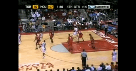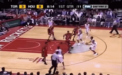 麦蒂吸引防守,对方在姚明身上不能配备太多防守力量。两人连线,姚明深入篮下接球,对方的防线已经没有威力,姚明扣篮得手。这一晚,他共扣篮4次。