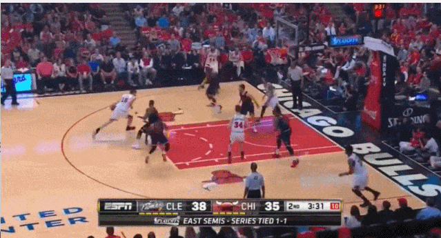 按说詹姆斯和公牛也是老对手了,从决定1之前就交手过,一直打到詹姆斯重回骑士,双方都熟悉。詹姆斯了解巴特勒的强硬。巴特勒防詹姆斯时张开手,如果老詹跳投,巴特勒基本不会扑防,这场球老詹三分7中1,詹姆斯突破时巴特勒始终保持在身前,起三步时给上身体接触,会用手去切球,真被詹姆斯身体碾压就交给身后的内线,诺阿和吉布森极其强硬,能顶住被巴特勒卸力后的詹姆斯。其实詹姆斯打巴特勒也能打,巴特勒毕竟小了一号,老詹用背身打效率更高,詹姆斯本身速度不慢,突破依赖冲击,背转身那一下能直接甩开巴特勒挑战公牛内线,但是这场球詹姆斯这么打的次数很少。