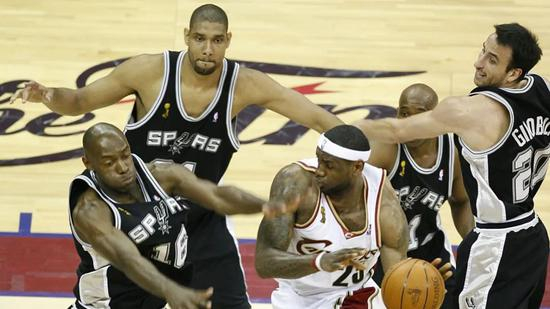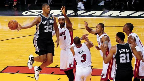 和热火的战术嬗变同时,马刺也处在重新确立自身风格的节骨眼上。在过去20年里,马刺起初是凭借坚韧磨砺的球风连续夺冠,那时总决赛的比分常常是78-77或88-77之类,这在当今NBA是难得一见的。