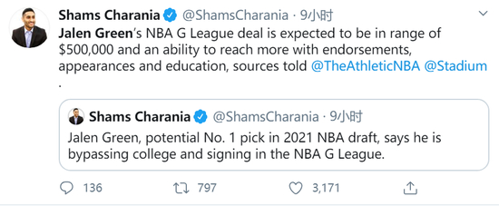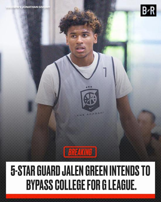 今日,名记shams爆料:全美五星高中生,2021届准状元杰伦-格林下赛季将跳过大学,直接加盟NBA下属发展联盟的球队,这是一只在洛杉矶建立的新球队,此前曾拿过NBA最佳主教练的萨姆-米切尔很可能执教这只新球队。杰伦-格林在发展联盟的薪资将达到至少50万美元,额外还有关于赞助、出场表现以及教育相关的奖金。除了格林,ESPN2021届排名第13的高中生以赛亚-托德也将加盟这只发展联盟的新球队。