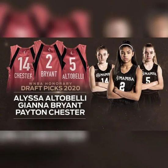 在今日的WNBA线上选秀大会上,WNBA官方用三个荣誉选秀权选中了吉安娜-布莱恩特、阿丽莎-奥托贝利、佩顿-切斯特。她们三位小球员在一月底的直升机事故中不幸离世。