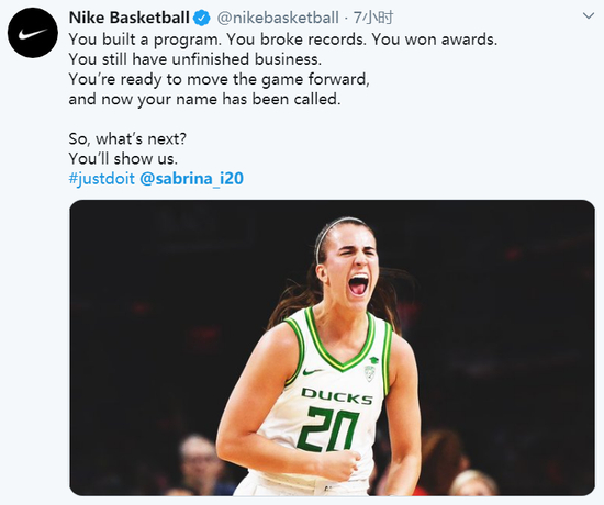 约内斯库是旧金山本地人,勇士官方也在ins上晒出她与库里的合照,并写道:“2020的WNBA选秀状元,湾区土生土长的——Sabrina Ionescu。”