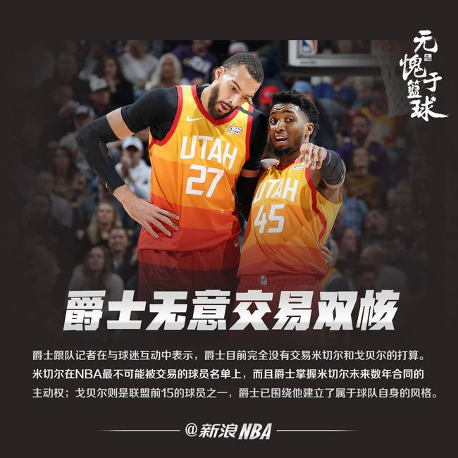 “至于戈贝尔,爵士已围绕他建立了属于球队的风格。戈贝尔是联盟前15的球员之一,而且他的特质在联盟中是独一无二的,爵士完全没有交易他的打算。”