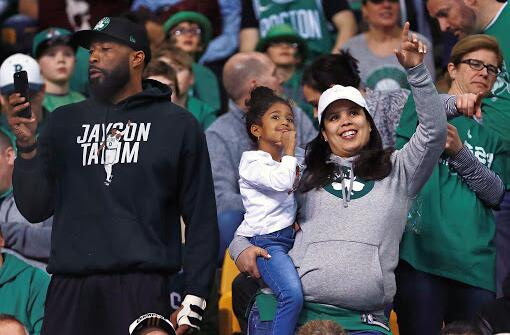 熟悉凯尔特人的球迷们总会发现,每当主场比赛,在北岸花园球馆的看台上都会出现一位留着长发,头戴帽子,在一件短袖T恤衫外套上一件绿军球衣、胖胖的女性,她就是塔图姆的母亲布兰迪-科尔(Brandy Cole)。