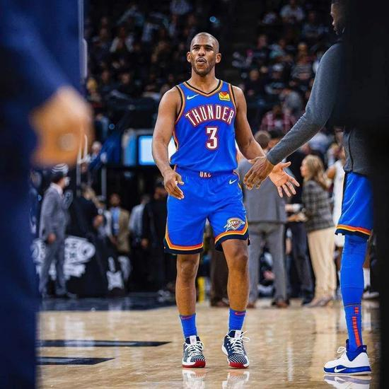 从上面图片中可以看到,威少上脚的是个人第一代签名鞋 Jordan Why Not Zer0.1 ,在之前一个赛季获得常规赛MVP的威少获得了个人签名鞋。而保罗上脚的是cp3Xae。这两双球鞋也是Jordan球星签名鞋更迭时代的一个标志。