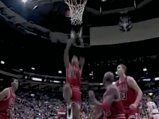 当天晚上打篮网的比赛,罗德曼如狼似虎、依旧生猛,怒砍20个篮板。