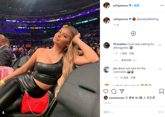 她也只是在今年1月15日晒出了自己坐在斯台普斯中心球馆看球的照片。虽然现在还有网友在开玩笑称索菲娅身边坐着的是詹姆斯,但是这看上去也只是调侃而已。