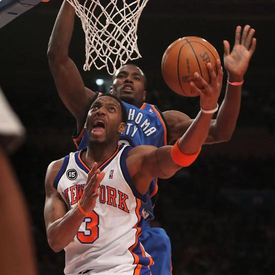 转会尼克斯的揭幕战,麦迪在主场迎来了雷霆的挑战,彼时的雷霆拥有威少、杜兰特两个新星,替补席上伊巴卡和哈登也十分有冲击力,全场比赛,杜兰特和威少合砍67分,麦迪也不甘示弱,全场17投10中,罚球7中5,拿到了26分5篮板4助攻。