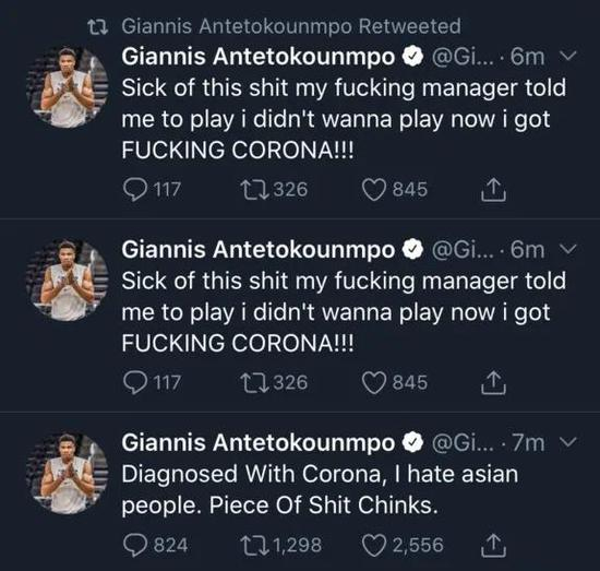 “嘿大家好!我回来了,也想为今天早些时候社交媒体上的一些事情做些澄清!我被盗号了,目前这件事正在调查中。那些发布的推文和图片是极其荒谬的,对于一些人说的那些话我感到十分失望和厌恶!我为雄鹿队、克里斯(米德尔顿)、勒布朗(詹姆斯)和(斯蒂芬)库里家庭都被那些不切实际的推文涉及到其中感到很悲伤和歉意。我也为科比(布莱恩特)的家人们感到特别难过,在如此悲痛的时候,他们不应该受到这种消极和恶劣行为的影响。感谢所有人对我和我家人的支持,也希望大家注意安全!”
