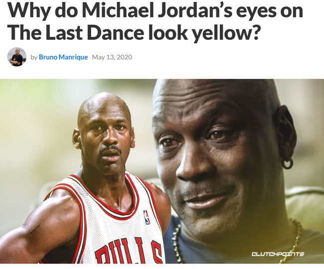 同时,由于黑皮肤的人群比白皮肤的人群更容易出现类似的问题,所以眼部泛黄的问题在乔丹身上也有所体现。
