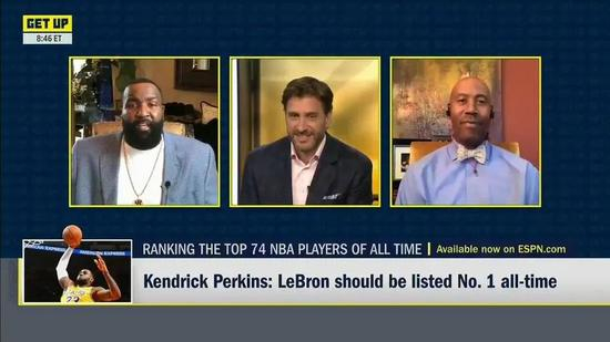帕金斯在节目中就詹姆斯是GOAT(Greatest Of All Time,史上第一人)的话题滔滔不绝。