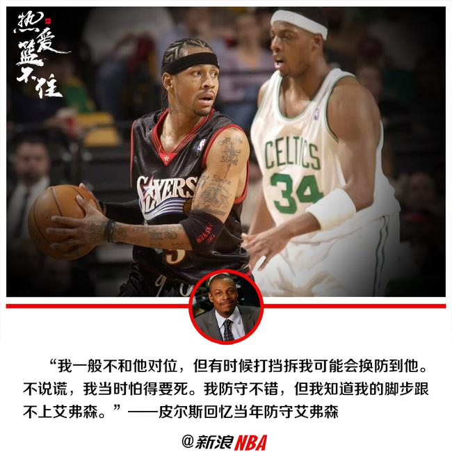 北京时间5月19日,凯尔特人名宿保罗-皮尔斯近日接受采访时,称自己当年在比赛中很害怕换防到阿伦-艾弗森。