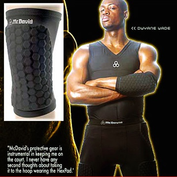 说完脚丫子,再说骨架子。骚老头子乔帮主曾将护肘搞成一代风潮。西科东艾北卡南麦无不争相模仿,不来个护肘都不好意思说自己是个后卫!后来护臂流行起来,护肘就慢慢失宠了。要说护臂,吹爆艾弗森的蜘蛛网!帅就一个字!我只说一次!护臂之外最流行的护具就是护膝,唠嗑姚明都是铁粉,向来视金钱为粪土的诺维茨基更是为了这个德国名族品牌破例接了商业代言。当然,要说最骚的还是骚韦,把护膝穿成黑丝,就问还有谁?EJ酱默默表示不服……