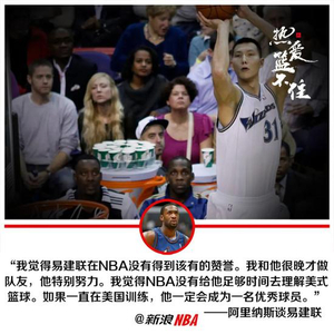 作为一名乐透秀,易建联匆匆而过的五年NBA生涯并不成功。高开低走经历了雄鹿,篮网,奇才和独行侠四队,从曾被球队寄予厚望重点培养的新人到垃圾时间都很难出场,有着职业生涯场均7.9分4.9篮板的不俗数据,却无法在运动生涯的颠峰年纪留在NBA,易建联的NBA之路写满了遗憾和不甘,不止我们国内球迷觉得惋惜,最近他的前队友,奇才队的全明星控卫阿里纳斯也在近日直播中为他叫屈。
