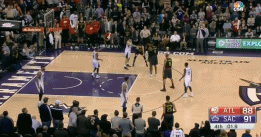 在国王的严密防守之下,发球者只能被迫改变传球线路,结果出现致命失误,而且隆多甚至判断到了老鹰被迫改变战术之后的传球路线,他在对手跑位的时候,没有去跟任何一个人,而是独自站在空旷的三秒区,似乎他知道对手会被迫改变发球路线,并最终发到自己这边来。结果证明,他是对的。