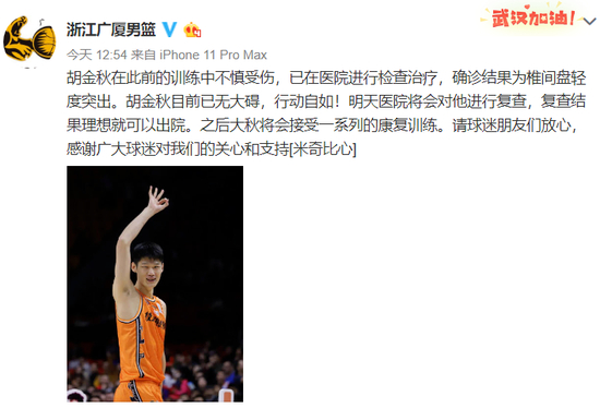 紧接着,广厦男篮官方发布通告:胡金秋确诊为椎间盘轻度突出,目前已无大碍,行动自如。球迷们悬着的心总算放下了,但没人知道当时的情况有多吓人,最近大秋在直播中回忆了受伤时的情形,听得人一身冷汗!